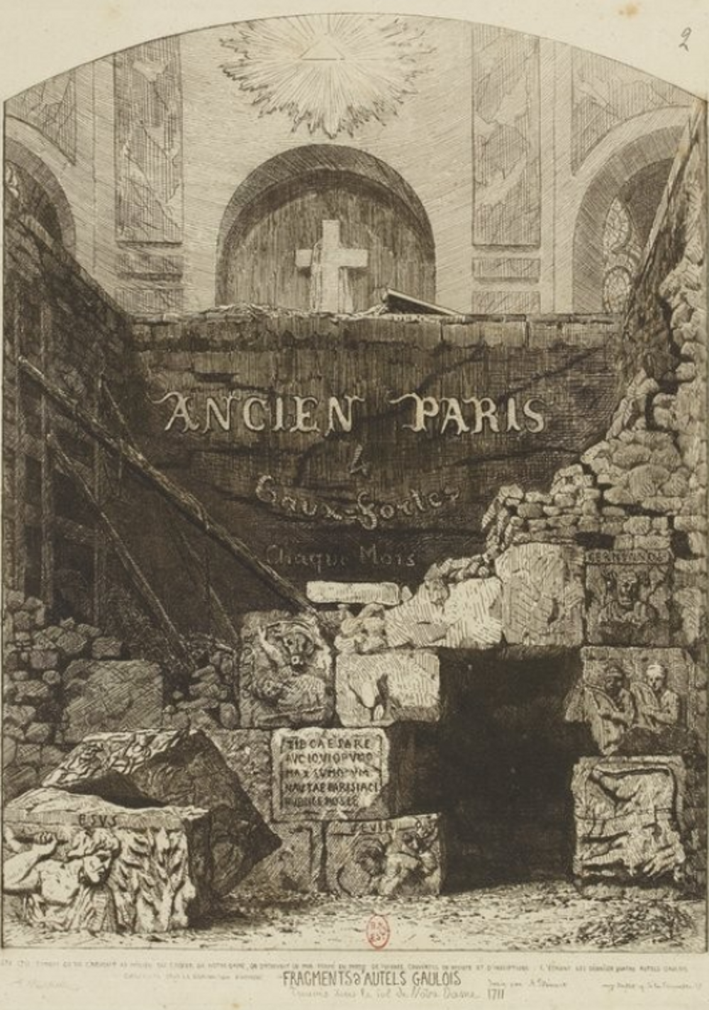 L'Île de Cité est située stratégiquement dans la Seine, alors les gens y habitent depuis les temps immémoriaux. Comme nous avons vu dans le Crypt Archéologique, ils valorisaient beaucoup ce rivier, le source de leur nourriture et protection, leur moyen de transportation et commerce. Ils personnifient la Seine comme la déesse Sequana, elle offraient des offrandes. Mais le principal lie de culte était à la source de la Seine, où ils ont construit un sanctuaire. Alors, qu’est ce que ca a faire avec la cathédrale? Le truc est que, quand on parle de conversion, la majorité de gens pensent que c'étaient ces gaules paiens qui a été convertie, par combinaison de volonté et force, a christianisme. Mais c’est un simplification. Depuis le premier siècle avant J.C., ce qu'est maintenant la France était un partie d’Empire Romaine. Et l'idéologie romaine etait un peu un promotion d’un “mixing pot” (un chaudron de mélange) pour tous les religions et cultures qu’ils rencontraient. Ils essaient de voir les similarités entre les dieux de peuples conquis et ces propres dieux et de dire qu’ils avaient toujours croire de mêmes dieux, ils avaient seulement utilisé de différents noms pour eux. Et les dieux qui n’avaient pas un homologue dans la mythologie établie étaient seulement incorporés à elle comme des dieux régionaux. Alors cette acceptation des dieux romains explique le grand nombre des autels trouvés autour de France. Quelques-uns ont été même trouvés au-dessous du sol de Notre Dame. Je trouve cela important, parce que cela montre que les gens à l'époque étaient d’accord avec l’utilisation des fragments des temples païens dans les structures chrétiennes.