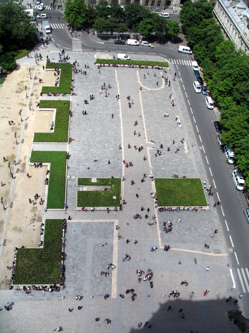 Ça nous conduit au fait qu’il y avait beaucoup d'églises mérovingiennes à l'Île de Cité. À cette époque, la cathédrale de Paris était celle de Saint Etienne, avec un plus petite église dédiée à la Vierge Marie près de lui. Mais ça a changé au milieu du 12e siècle avec l'évêque Maurice de Sully. Le truc est qu'au 12e siècle Paris s'est agrandit beaucoup, il y avait beaucoup plus personnes qui nunc allaient à ces églises. Un autre chose est qu’un nouveau style architectural est apparu - le Gothic. Il s’appelle ça parce qu’il part de modèles Classique et au lieu de copier les anciens Grecs et Romains il suit les nouveaux modèles innovés par les “barbares”. Une des plus importantes innovations est l’arc brisé. Voilà une petite leçon d’histoire des arcs. Au début, les gens utilisaient seulement un linteau pour soutenir le mur et le toit au-dessus un ouverture comme une porte ou une fenêtre. Mais un linteau doit être fait d’un seul bloc de matériel, que forcément limité la largeur et l’hauteur de cette ouverture. Alors les anciennes apprenaient à faire les arc ronds, qui peuvent être plus grands. Mais le problème avec eux est qu’ils ont une limite sur combien de poids ils peuvent soutenir avant de s'effondrer. Ils exercent aussi beaucoup de force horizontale sur les murs, ce qui peut les faire s'effondrer vers l'extérieur. Les arcs brisés ressoudent le premier problème par conduire plus de force vers la bas et les murs peuvent être renforcés au-dehors par les contreforts. Ce nouveau type d’arc permet aux bâtisseurs de faire des églises plus élégantes, hautes et légères. Les arcs étaient remplis par les vitrailles, qui apportent plus de la lumière à l'intérieur. Tous ces éléments étaient utilisés ensemble pour la première fois dans la basilique d’abbaye de Saint Denis, finit a 1144. Cette abbaye était très connue et riche parce que c'était la nécropole royale et parce qu’elle loge les reliques de Saint Denis. C’est le saint qui a été décapité par les romains et qui a porté sa tête a ces mains de la lieu ou il voulait pour l’abbaye d'être construit. Vous avez définitivement vu les statuts de lui autour le Paris, il est un saint populaire ici.